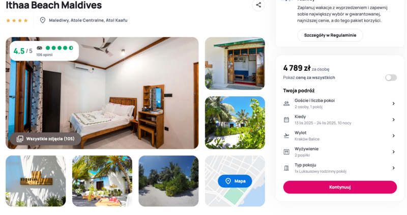 Wyjazd w takiej cenie to nie lada okazja, zwłaszcza jeśli wziąć pod uwagę komfort, jaki oferuje ośrodek, i wyjątkowe położenie. Ithaa Beach Maldives to miejsce z kameralnym klimatem, idealne zarówno dla par szukających romantycznego wypoczynku, jak i dla rodzin, które marzą o spokojnym urlopie w tropikach.