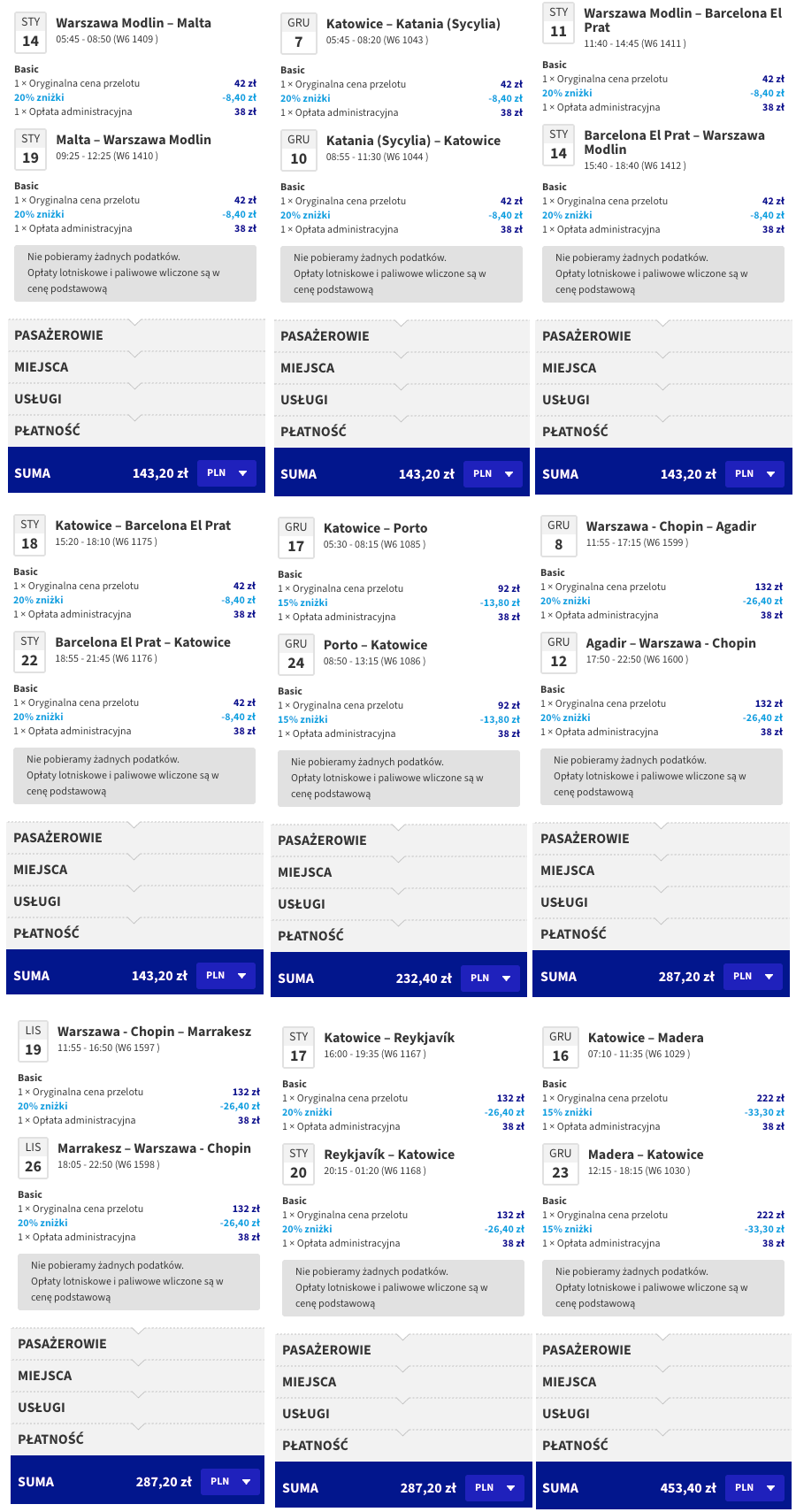 Agadir, Barcelona, Madera, Marrakesz, Porto, Sycylia, Katowice, Warszawa