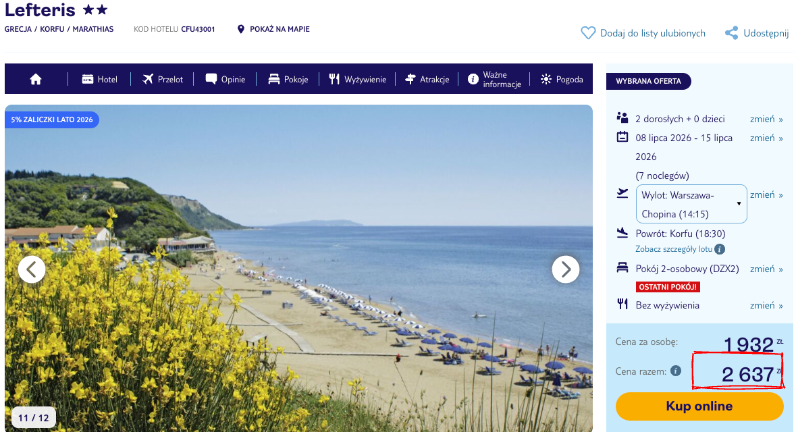Wakacje (lipiec-sierpień) w Grecji: Korfu, kameralny hotel przy plaży od 1319 zł