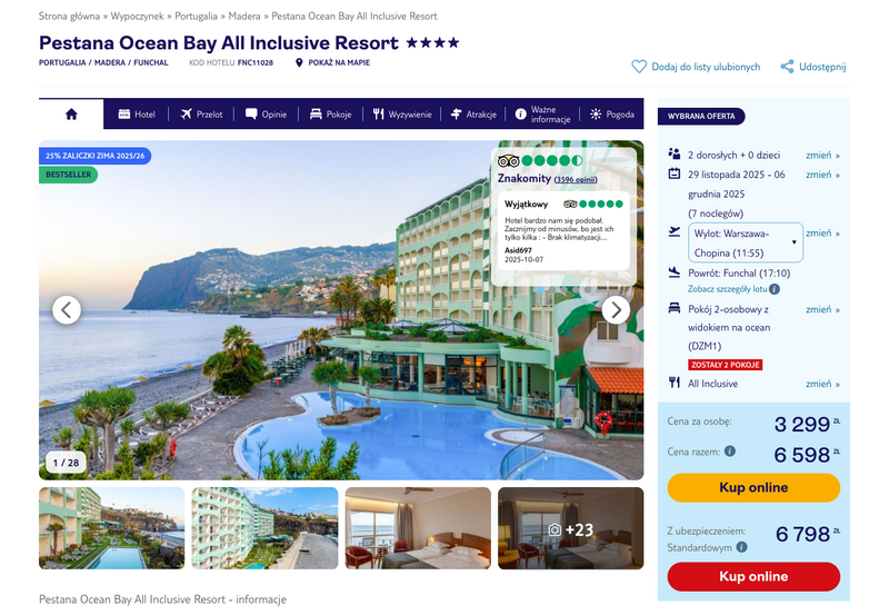 Aktualizacja: Madera: 4* Pestana Ocean Bay All Inclusive Resort nad oceanem od 2949 zł