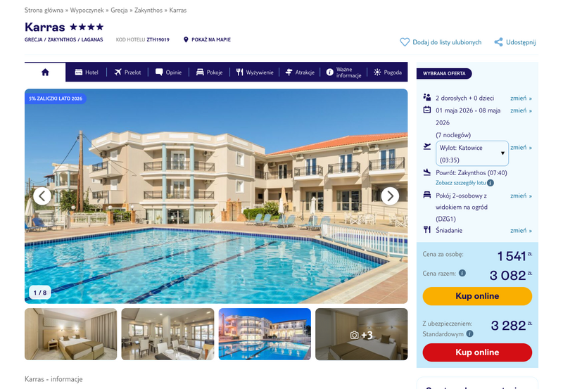 Aktualizacja: Majówka z widokiem na Zatokę Wraku: Zakintos, 4* hotel ze śniadaniami od 1491 zł