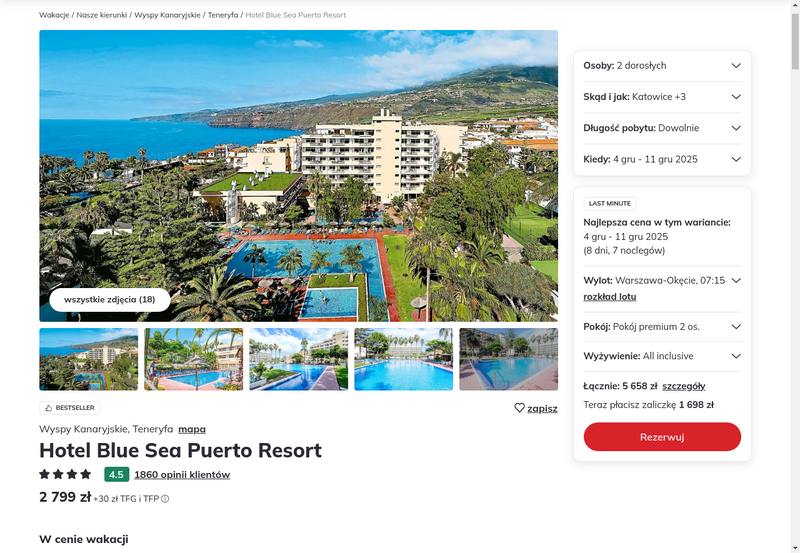 Aktualizacja: Wypoczynek na Teneryfie w 4* hotelu z all inclusive od 2099 zł