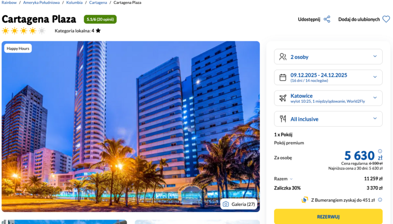 Dwa tygodnie w Kolumbii: 4* hotel z all inclusive za 5630 zł