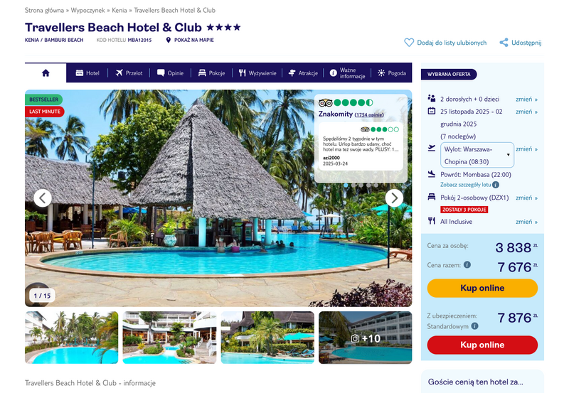 Aktualizacja: Wypoczynek przy plaży w Kenii: 4* hotel z all inclusive od 3638 zł