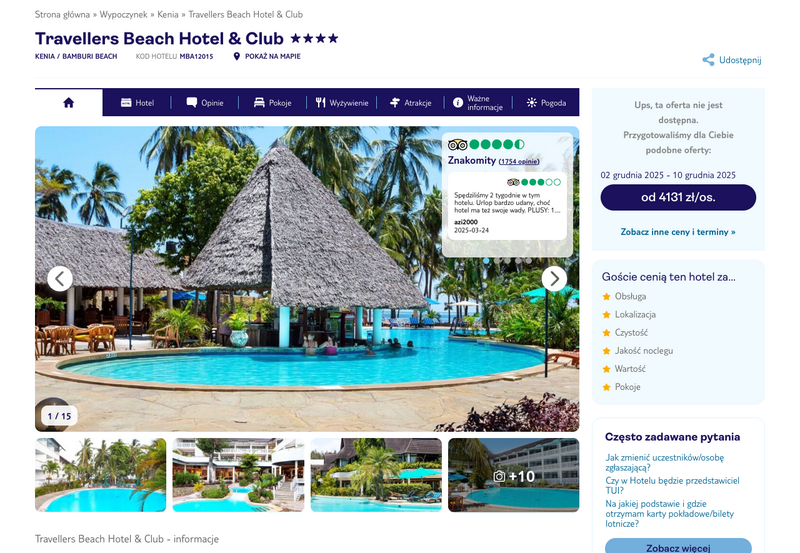Aktualizacja: Wypoczynek przy plaży w Kenii: 4* hotel z all inclusive od 3638 zł