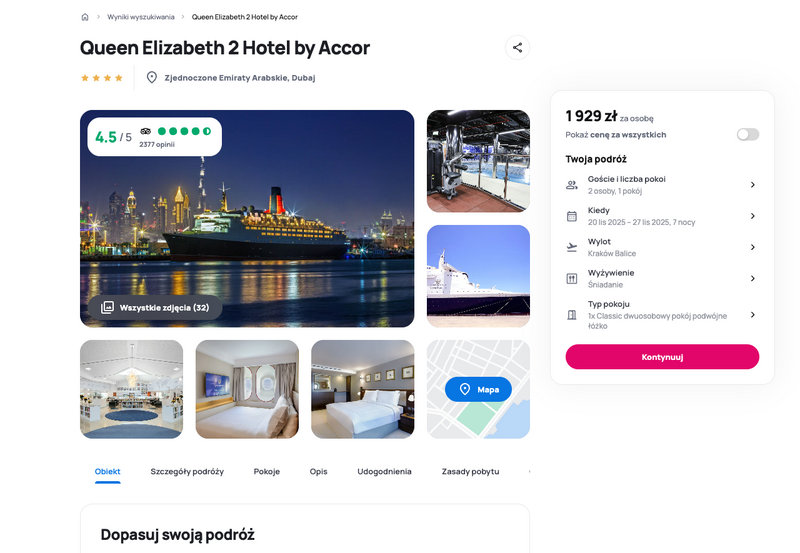 Aktualizacja: Wypoczynek w Dubaju: Pobyt na statku Queen Elizabeth 2 Hotel ze śniadaniami od 1909 zł