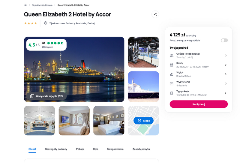 Aktualizacja: Wypoczynek w Dubaju: Pobyt na statku Queen Elizabeth 2 Hotel ze śniadaniami od 1909 zł