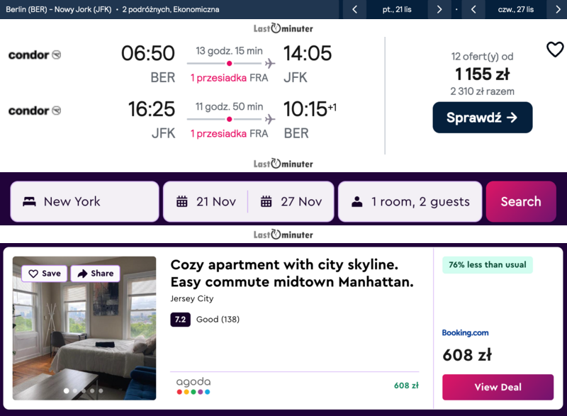 Misją Lastminuter.pl jest przedstawienie Ci najlepszych zdaniem naszej redakcji okazji na podróże. Opisujemy oferty znalezione przez nas w internecie i wskazujemy adresy internetowe, pod którymi samodzielnie możesz wykupić podróż lub elementy podróży. Ceny w artykułach są aktualne w chwili publikacji. Możemy otrzymywać wynagrodzenie od partnerów handlowych, do których Cię przekierowujemy. Nie ma to wpływu na cenę Twojej wycieczki. Powielanie publikacji zabronione.