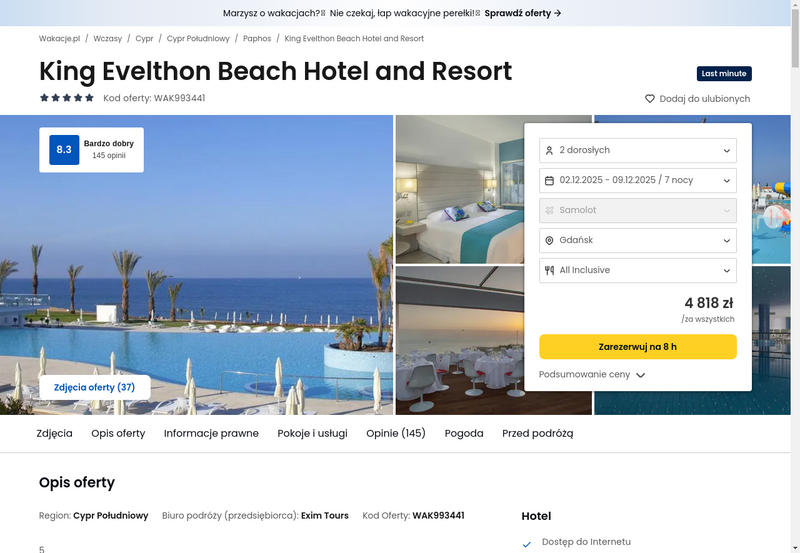 Aktualizacja: Śródziemnomorski klimat przez cały rok: Cypr, 5* hotel z all inclusive od 2349 zł