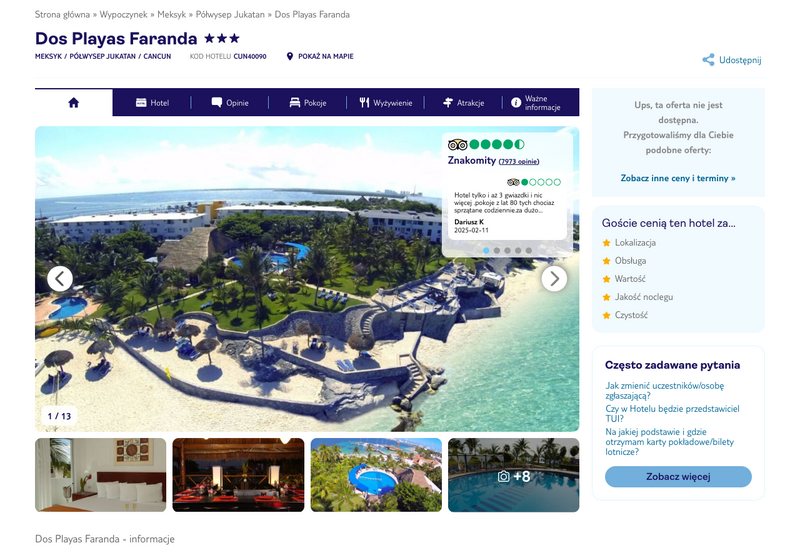 Oferty wycieczek dostarczone przez naszych partnerów nie są aktualizowane w czasie rzeczywistym, w związku z czym ceny i dostępność ofert mogą się nieznacznie różnić od aktualnych. Dokładamy wszelkich starań aby rozbieżności były jak najmniejsze.