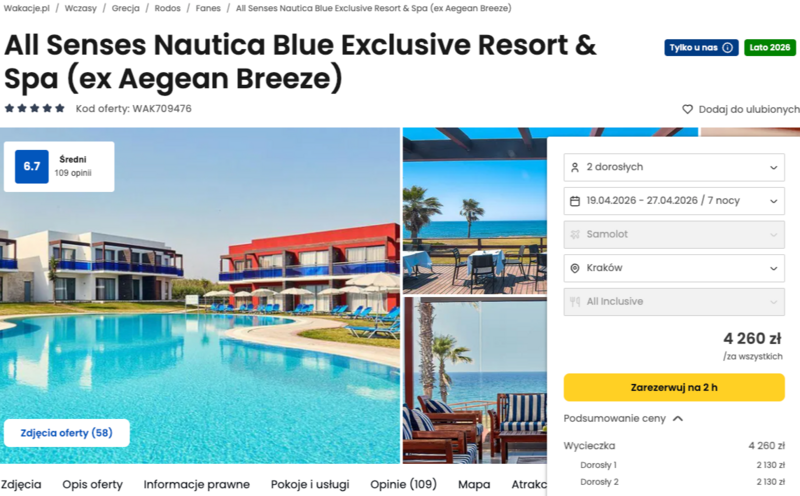Wyloty z Krakowa i Warszawy na Rodos to świetna okazja, by oderwać się na chwilę od codzienności i zanurzyć w klimacie greckiego luzu. All Senses Nautica Blue Exclusive Resort & Spa, zaprasza do świata pięciogwiazdkowego komfortu w formule all inclusive – czyli bez zmartwień o cokolwiek.