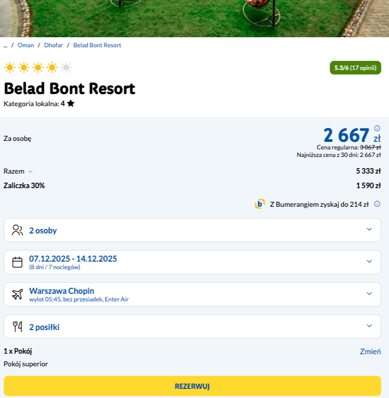 Biorąc pod uwagę wszystko, co zawiera pakiet, i wyjątkowe położenie Salala, oferta wypada bardzo atrakcyjnie. To dobra okazja, by oderwać się od codzienności i spędzić tydzień w miejscu, które łączy komfort z nutką egzotyki. Może to właśnie ten kierunek będzie Twoim następnym odkryciem?