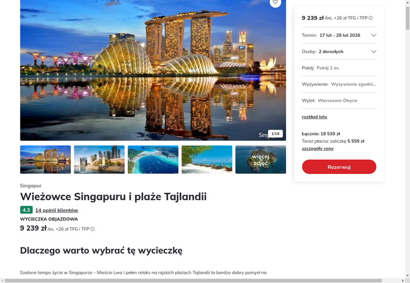 Aktualizacja: Wieżowce Singapuru i plaże Tajlandii (wycieczka objazdowa): 10 dni w dalekiej Azji za 4999 zł