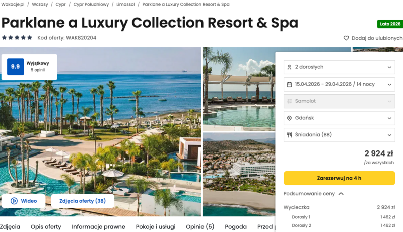 Wyloty z Gdańska, Wrocławia, Poznania, Krakowa, Katowic, Berlina, Warszawy (Modlin) i Warszawy przeniosą Cię prosto na słoneczny Cypr, gdzie czeka wyjątkowy odpoczynek w eleganckim hotelu Parklane a Luxury Collection Resort & Spa, położonym na południowym wybrzeżu wyspy.