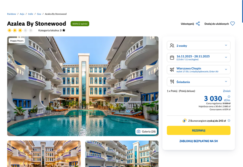 Aktualizacja: Indie (Goa): 11-dniowy wypoczynek w 3* hotelu ze śniadaniami za 2880 zł