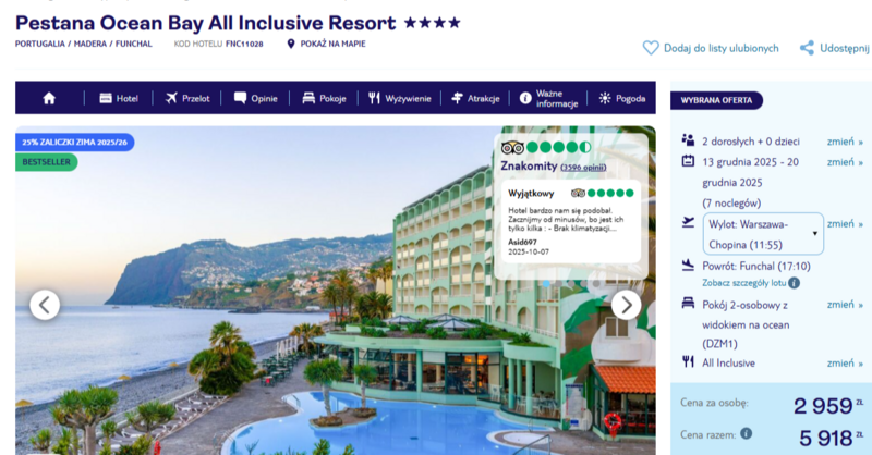 Wylot z Warszawy na Maderę przez to świetna propozycja dla tych, którzy szukają trochę słońca, ciszy i niezapomnianych widoków. A jeśli do tego dołożyć wyjątkowy komfortowy wypoczynek w Pestana Ocean Bay All Inclusive Resort, brzmi to jak plan na naprawdę udany urlop.