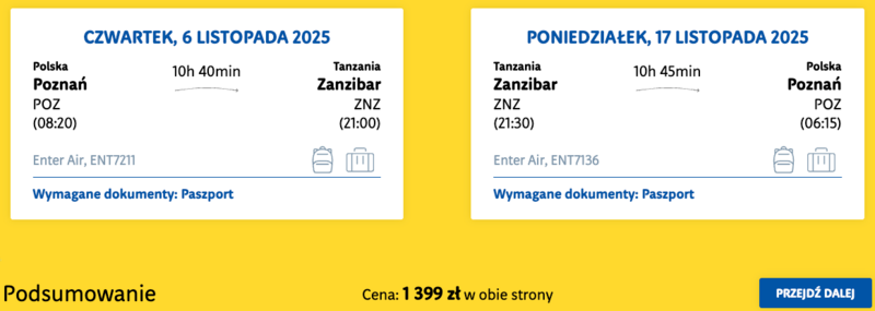 Tanie loty czarterowe z dużym bagażem na Zanzibar za 1399 zł