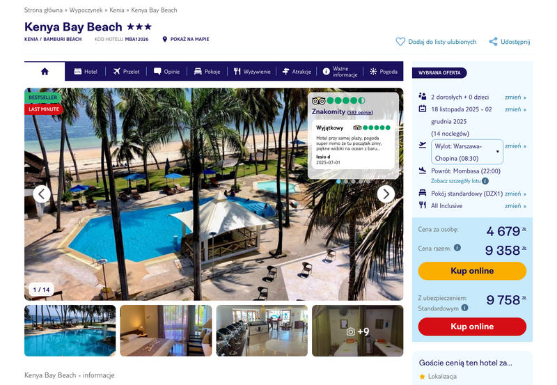 Aktualizacja: Długi wypoczynek nad oceanem: Kenia, 14 dni w 3* hotelu z all inclusive za 4479 zł