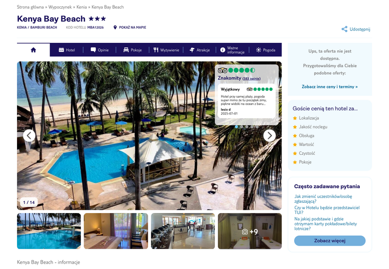 Aktualizacja: Długi wypoczynek nad oceanem: Kenia, 14 dni w 3* hotelu z all inclusive za 4479 zł