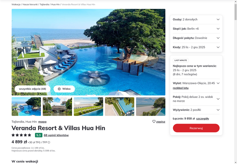 Aktualizacja: Urlop w Tajlandii w wersji lux: Znakomity 5* hotel z wyżywieniem przy plaży za 4499 zł