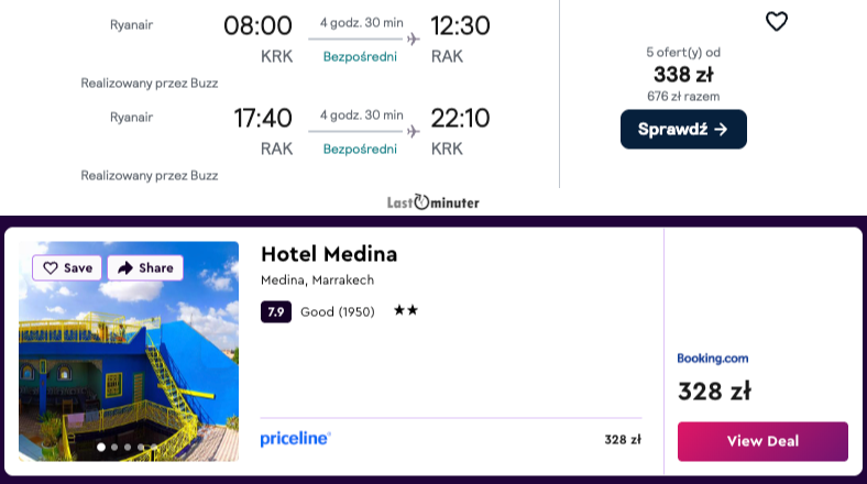 Misją Lastminuter.pl jest przedstawienie Ci najlepszych zdaniem naszej redakcji okazji na podróże. Opisujemy oferty znalezione przez nas w internecie i wskazujemy adresy internetowe, pod którymi samodzielnie możesz wykupić podróż lub elementy podróży. Ceny w artykułach są aktualne w chwili publikacji. Możemy otrzymywać wynagrodzenie od partnerów handlowych, do których Cię przekierowujemy. Nie ma to wpływu na cenę Twojej wycieczki. Powielanie publikacji zabronione.