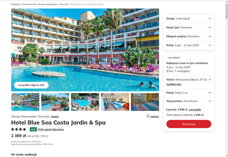 Aktualizacja: Jesienne słońce na Wyspach Kanaryjskich: Teneryfa, 4* hotel z all inclusive za 2299 zł