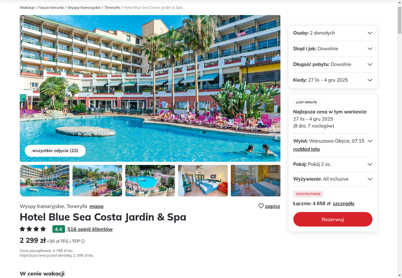 Aktualizacja: Jesienne słońce na Wyspach Kanaryjskich: Teneryfa, 4* hotel z all inclusive za 2299 zł