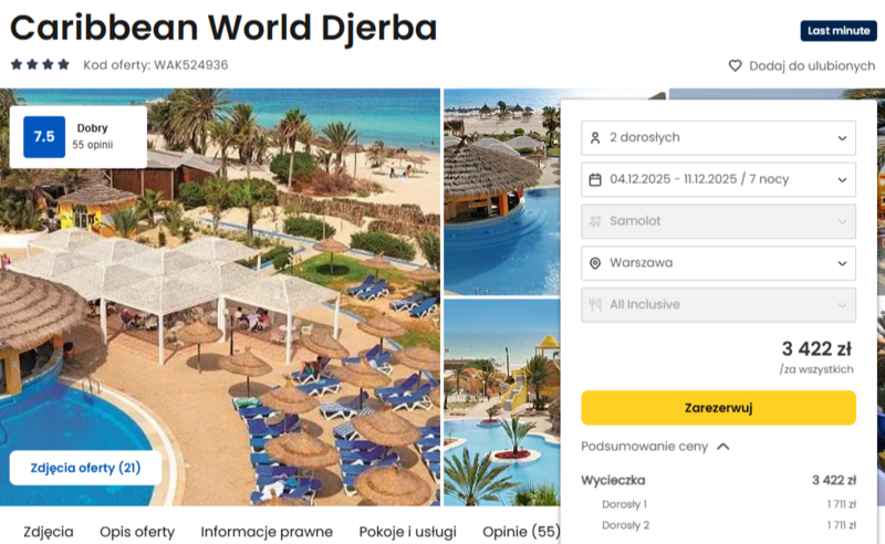 Biorąc pod uwagę całokształt – komfortowy hotel, dobrze przygotowaną ofertę, świetne położenie i korzystną cenę – wyjazd na Djerbę prezentuje się naprawdę atrakcyjnie. To miejsce, w którym łatwo się zrelaksować, nacieszyć słońcem i poznać kulturę Tunezji w przystępny sposób. Idealne, by po prostu odpocząć.