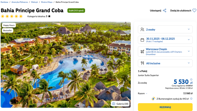 Wypoczynek w Meksyku w wersji lux: Bardzo dobry 5* hotel z all inclusive od 5530 zł