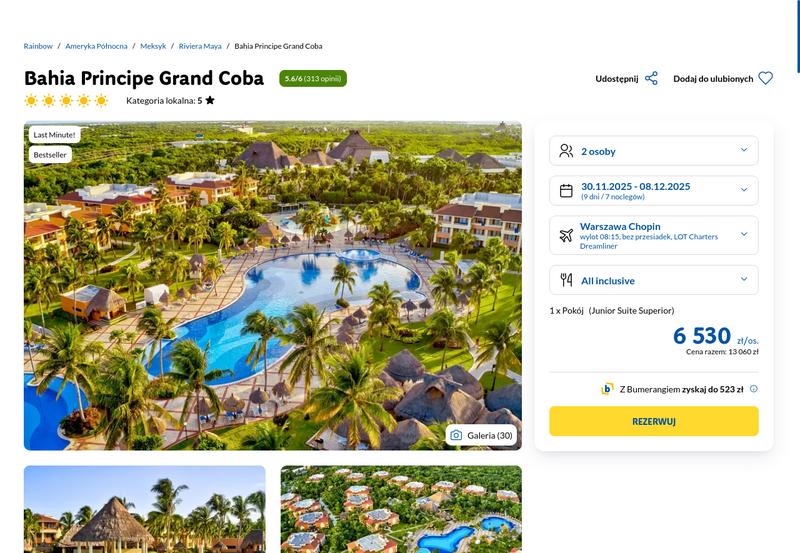 Aktualizacja: Wypoczynek w Meksyku w wersji lux: Bardzo dobry 5* hotel z all inclusive od 5530 zł