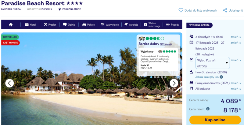 Loty z Poznania i Katowic na Zanzibar to świetna okazja, by oderwać się od codzienności i wskoczyć w rytm tropikalnych wczasów. A gdy do gry wchodzi czterogwiazdkowy Paradise Beach Resort z opcją all inclusive, można już zapomnieć o planowaniu czy kalkulowaniu wydatków – wszystko jest pod ręką.