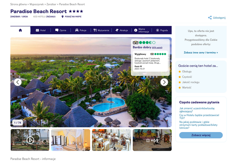 Niedostępność oferty została udokumentowana zrzutem ekranu.