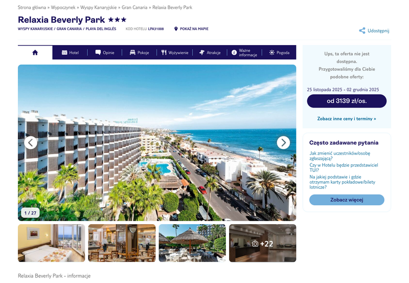 Niedostępność oferty została udokumentowana zrzutem ekranu.