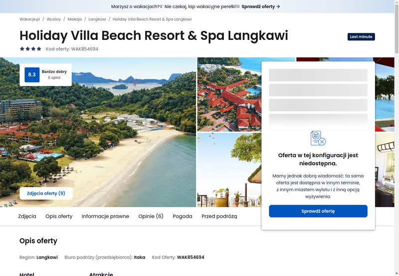 Niedostępność oferty została udokumentowana zrzutem ekranu.