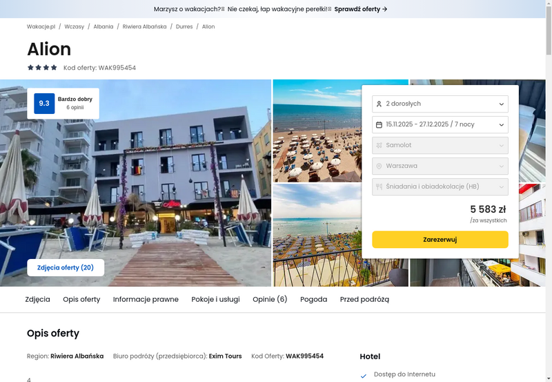 Aktualizacja: Odkryj uroki Albanii: 4* hotel z wyżywieniem od 1279 zł