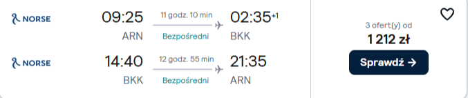 W tej chwili ceny biletów naprawdę zaskakują – są wyjątkowo przyjazne dla portfela. Do tego bezpośrednie połączenia zapewniają wygodną i stosunkowo szybką podróż – lot trwa nieco ponad 11 godzin. Przy takich warunkach Tajlandia wydaje się być znacznie bliżej, niż mogłoby się wydawać - nawet mimo wylotu ze Skandynawii (łatwo dostaniesz się tam tanimi liniami z niemal każdego miasta w Polsce).
