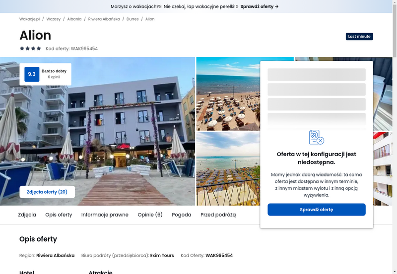 Niedostępność oferty została udokumentowana zrzutem ekranu.