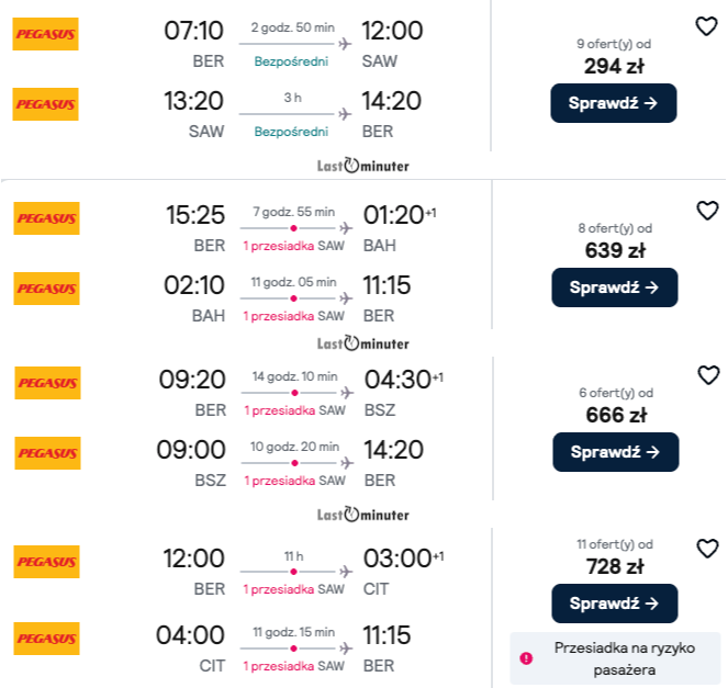 Wyloty zaplanowano z Berlina, a celem jest Stambuł i inne ciekawe kierunki z siatki przewoźnika Pegasus. Dostępne wybrane terminy od grudnia 2025 do marca 2026 roku.
