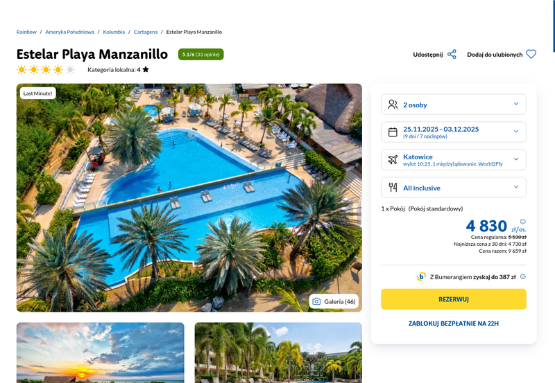 Aktualizacja: Czas na urlop daleko od domu: Kolumbia, 4* hotel z all inclusive przy plaży za 4730 zł