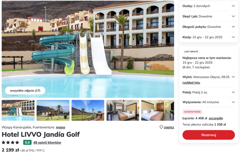 Na tle innych ofert wyprawa na Fuerteventurę do hotelu LIVVO Jandía Golf zdecydowanie się wyróżnia. To dobra propozycja dla osób, które chcą odpocząć, dobrze zjeść i spędzić czas w urokliwym miejscu, bez względu na porę roku. Świetny pomysł na reset.