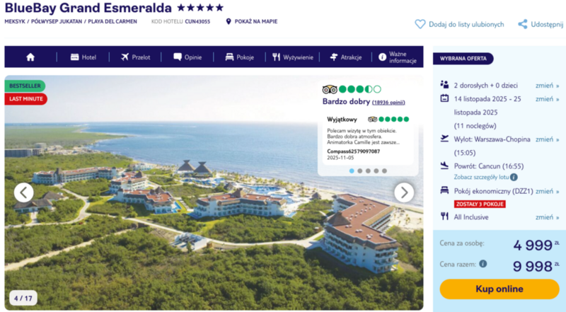 Wyjazd do BlueBay Grand Esmeralda to ciekawa opcja dla osób szukających komfortowego wypoczynku w egzotycznym miejscu, bez konieczności planowania każdego szczegółu. Dzięki formule all inclusive można po prostu cieszyć się chwilą – i tym, co Meksyk ma najlepszego do zaoferowania.