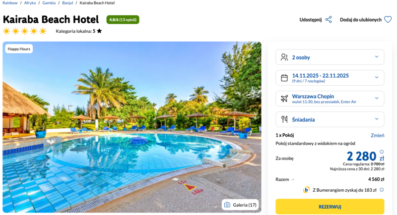 Wyloty z Warszawy i Katowic do Gambii, a dokładnie do Kairaba Beach Hotel w Kololi, to świetna okazja, by na chwilę zostawić codzienność i zanurzyć się w klimacie relaksu i przygody.