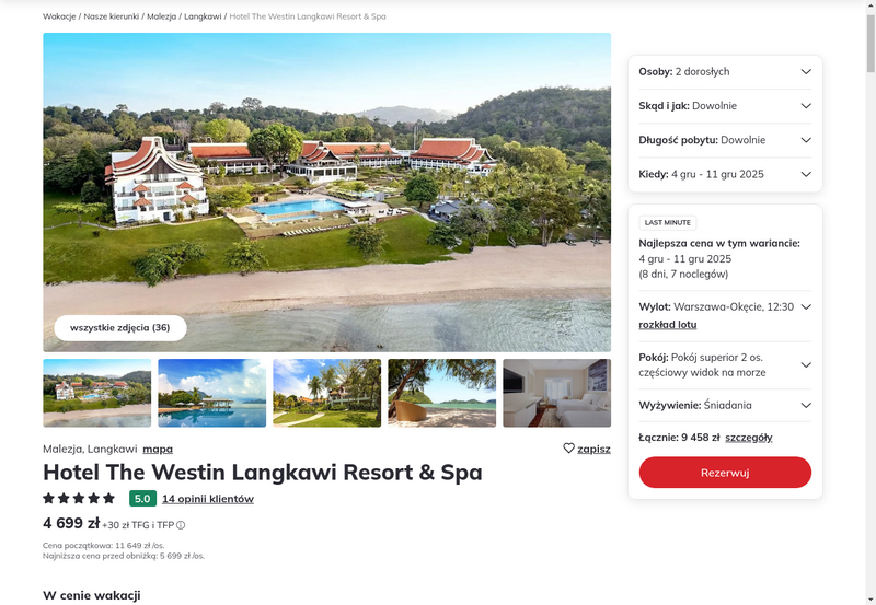 Aktualizacja: Luksusowy odpoczynek w Malezji: 5* The Westin Langkawi Resort & Spa ze śniadaniami od 3499 zł