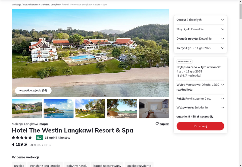 Aktualizacja: Luksusowy odpoczynek w Malezji: 5* The Westin Langkawi Resort & Spa ze śniadaniami od 3499 zł