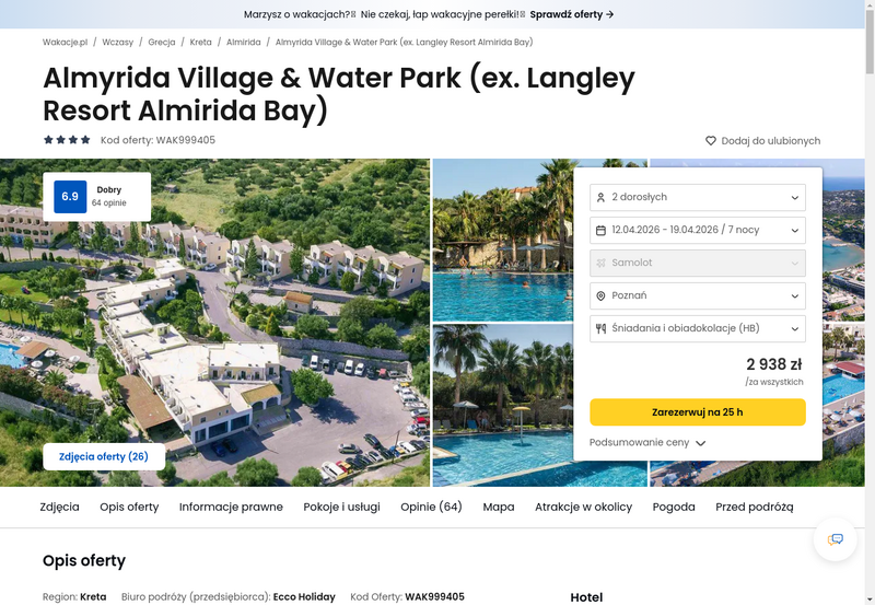 Aktualizacja: Zaplanuj wczasy z wyprzedzeniem: Grecja (Kreta), 4* hotel z wyżywieniem od 1365 zł