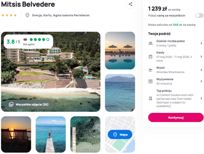 Wielu turystów docenia Mitsis Belvedere za uprzejmą obsługę oraz smaczne, różnorodne posiłki. Często w opiniach pojawiają się słowa uznania dla otoczenia i przyjemnego basenu, idealnego na spokojne popołudnia. Pojawiają się również sugestie co do standardu niektórych pokoi, jednak ogólne wrażenie z pobytu jest bardzo pozytywne. W niedalekiej okolicy czekają m.in. ciekawe muzea, starożytne ruiny i elegancki Pałac Achilleion – idealne miejsca na kilkugodzinne wyprawy.