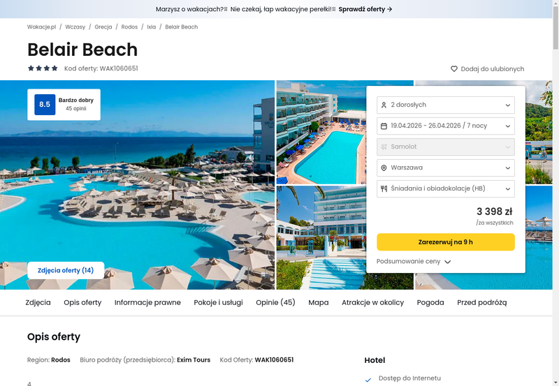 Aktualizacja: Wiosenne promienie słońca w Grecji: Rodos, 4* hotel z wyżywieniem od 1549 zł