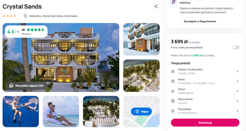 Patrząc na standard hotelu, jego lokalizację i zakres oferowanych usług, to propozycja naprawdę warta rozważenia. Malediwy to wyjątkowe miejsce – idealne na romantyczny wyjazd, rodzinny urlop albo zwyczajną ucieczkę od codzienności z grupą przyjaciół.