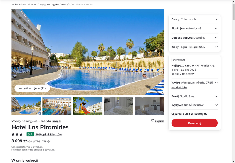 Aktualizacja: Teneryfa last minute: 3* hotel z all inclusive za 1999 zł