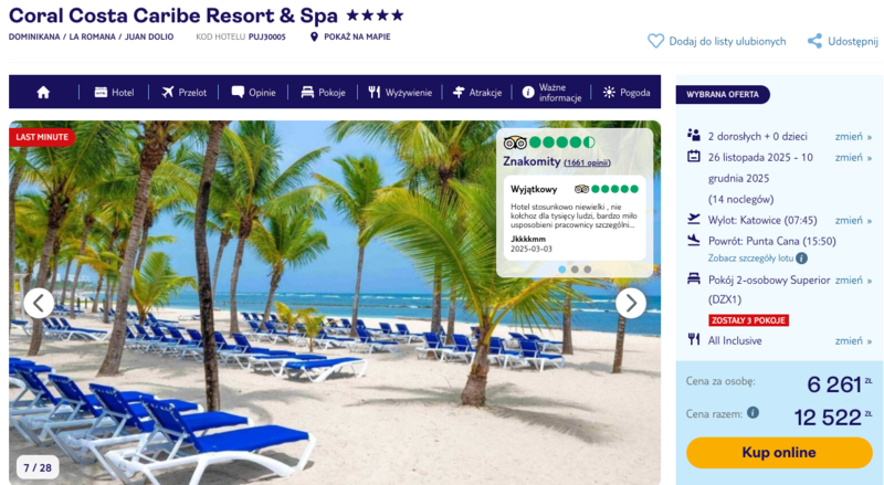 Biorąc pod uwagę jakość hotelu, przyjemną lokalizację oraz zawartą w cenie ofertę all inclusive, taka wycieczka może przypaść do gustu zarówno parom, jak i rodzinom z dziećmi. To wszystko sprawia, że podróż do Dominikany może okazać się nie tylko odpoczynkiem, ale także wyjątkowym wspomnieniem na dłużej.